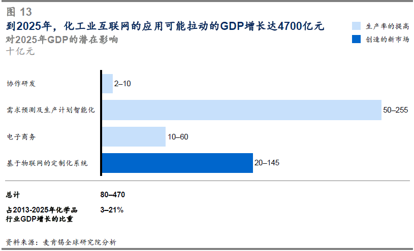 消费电子。互联网为消费电子类产品释放出巨大的创新动力,包括智能家电和网络电视等连接设备。2013年,大约70%的中国网民观看网络视频,有大约50%使用移动互联网观看网络视频。数据存储、文件共享和其他用途的消费者方案,如可为工业客户提供水处理方案、提供精细农业系统等。预计到2015年,互联网对化工业GDP增长的贡献度为3%至21%。